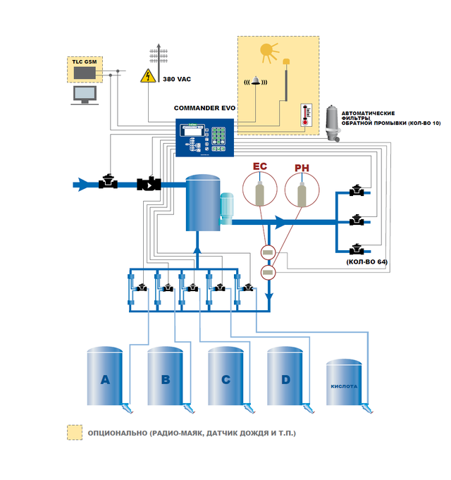 • Дозировка от двух до четырех удобрений c заданной или пропорциональной модальностью